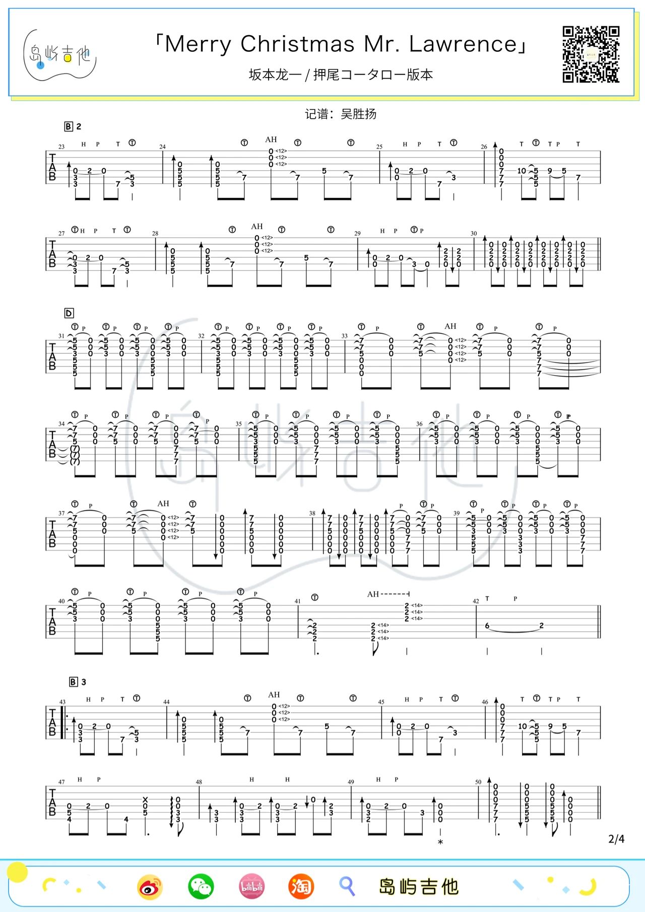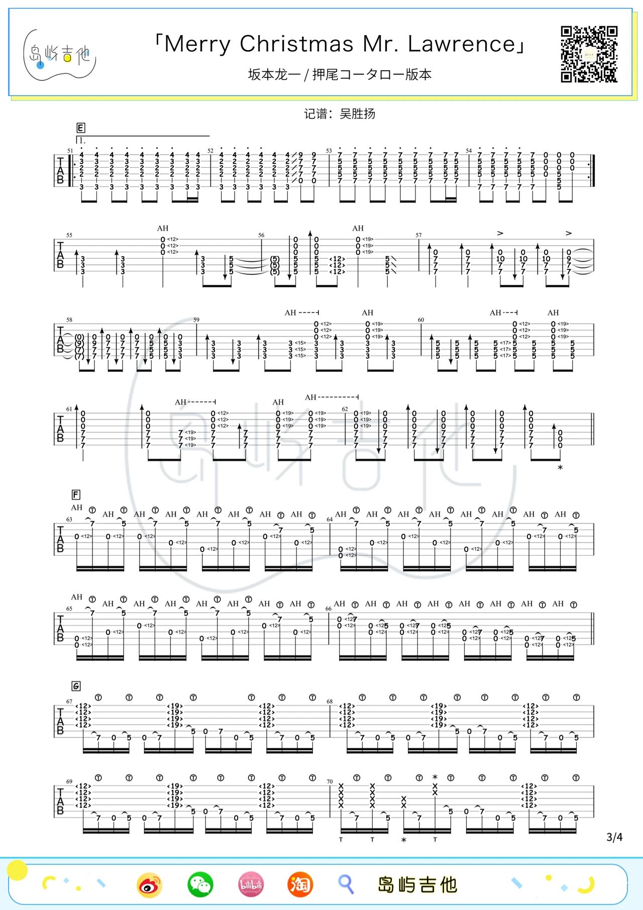 当前位置:琴谱网>吉他独奏>Merry Christmas Mr.Lawrence