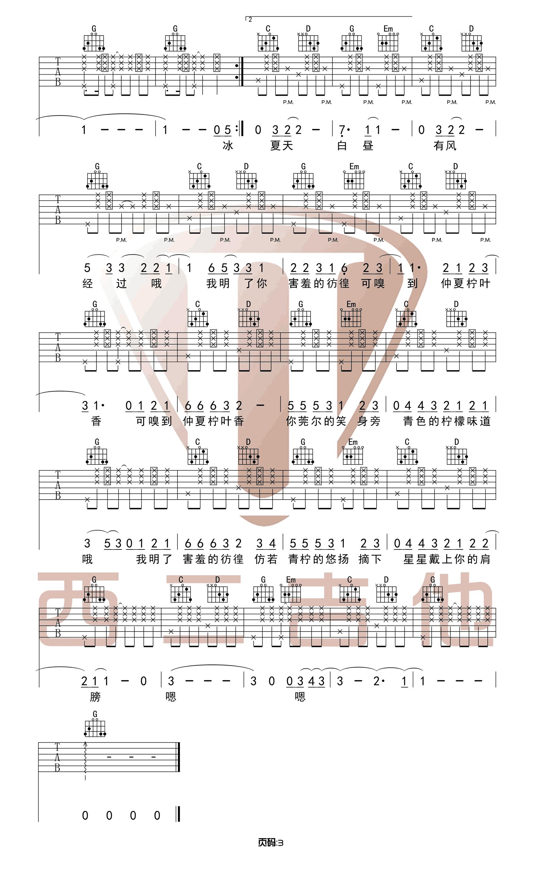 当前位置:琴谱网>吉他弹唱>青柠