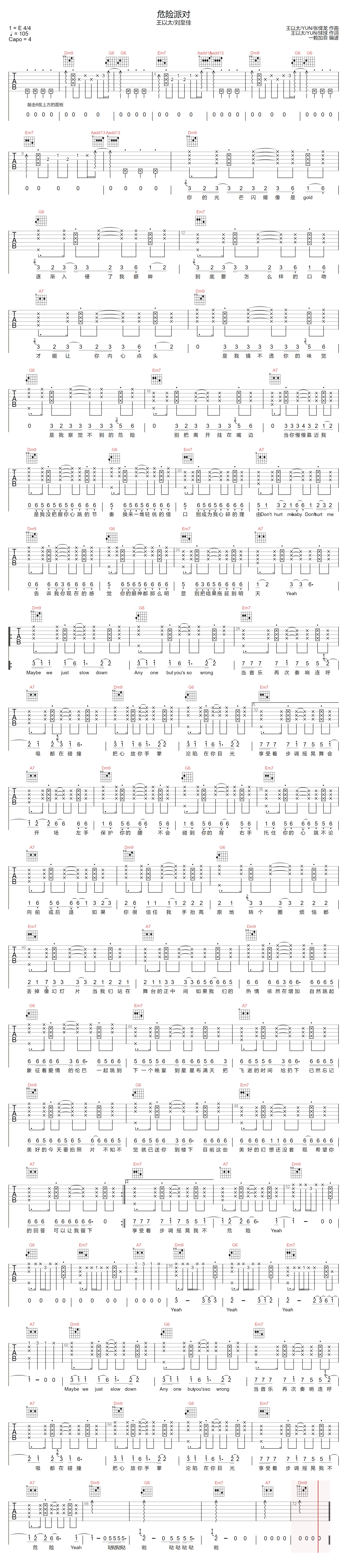 当前位置:琴谱网>吉他弹唱>危险派对