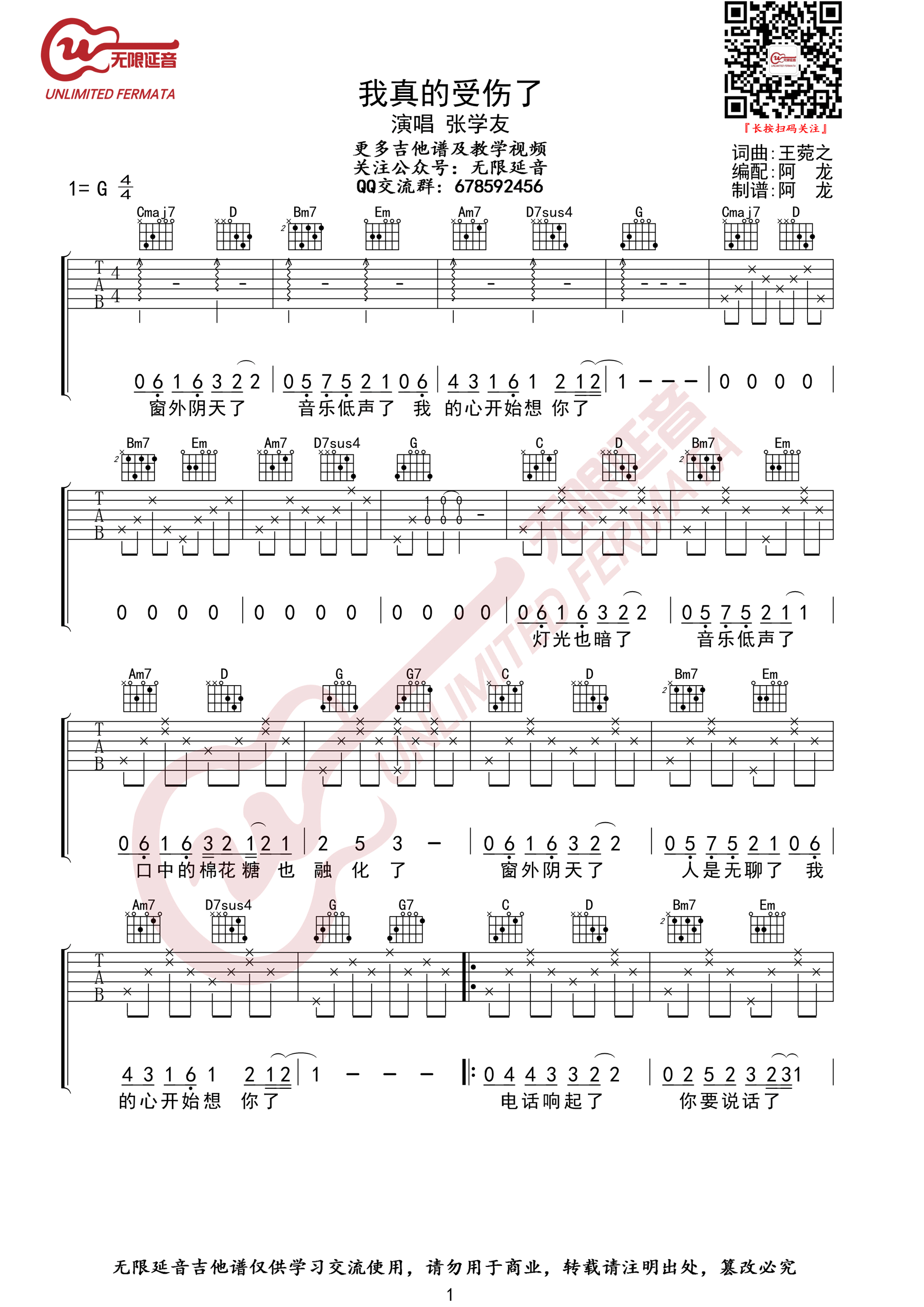 当前位置:琴谱网>吉他弹唱>我真的受伤了