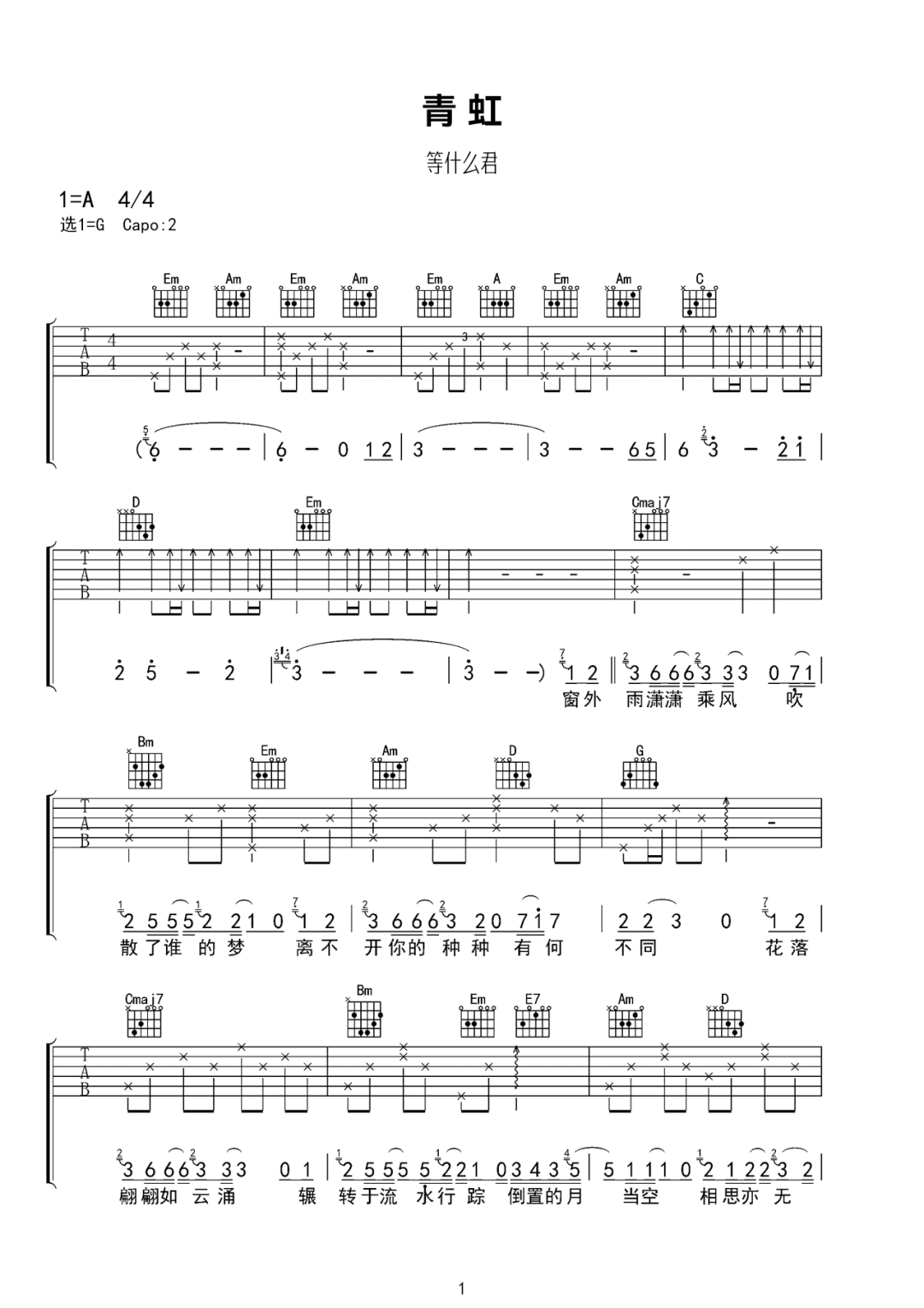 青虹吉他谱 - 等什么君 - G调吉他弹唱谱 - 原版