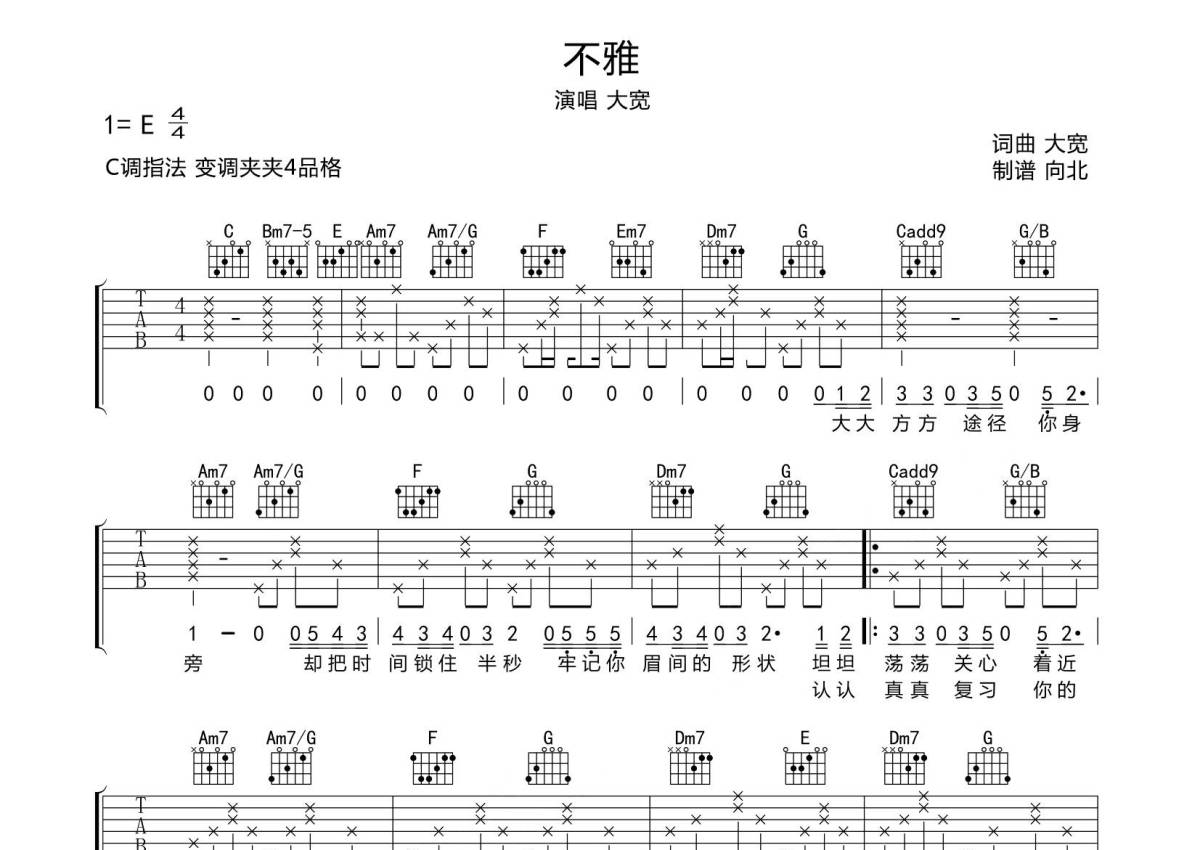 • 不雅吉他谱 - 大宽 - C调吉他弹唱谱 - 专辑版第1张