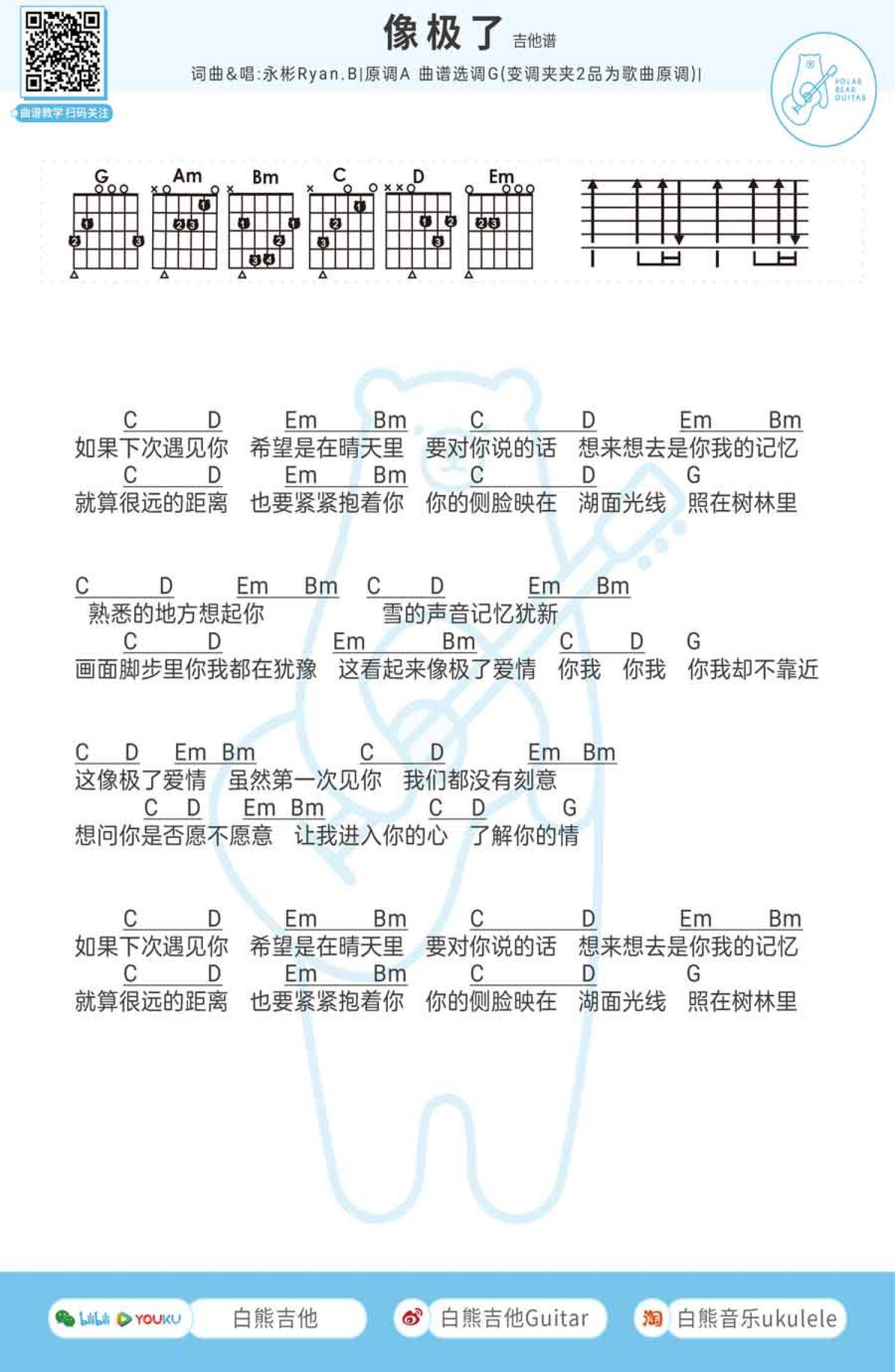 曲谱介绍: 永彬Ryan.B《像极了》吉他谱_G调吉他弹唱谱_和弦谱