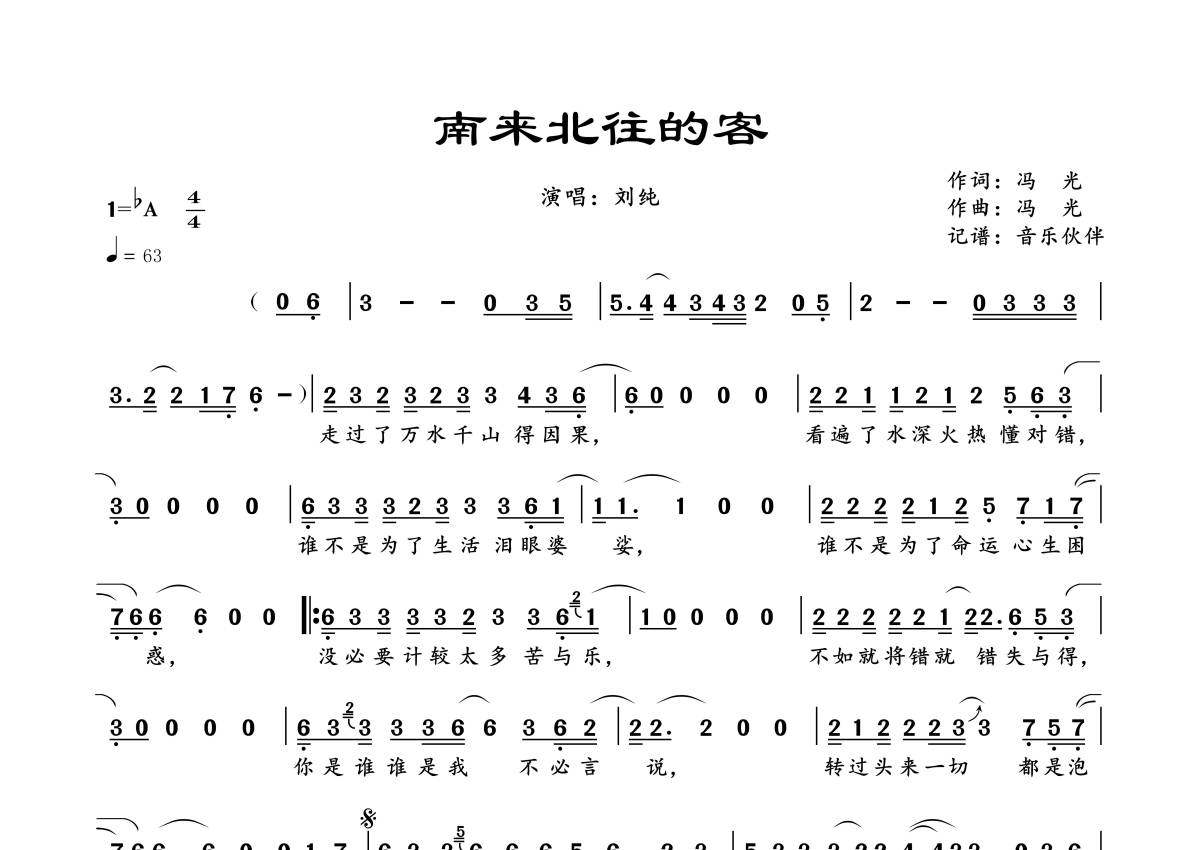 南来北往的客简谱 - 刘纯