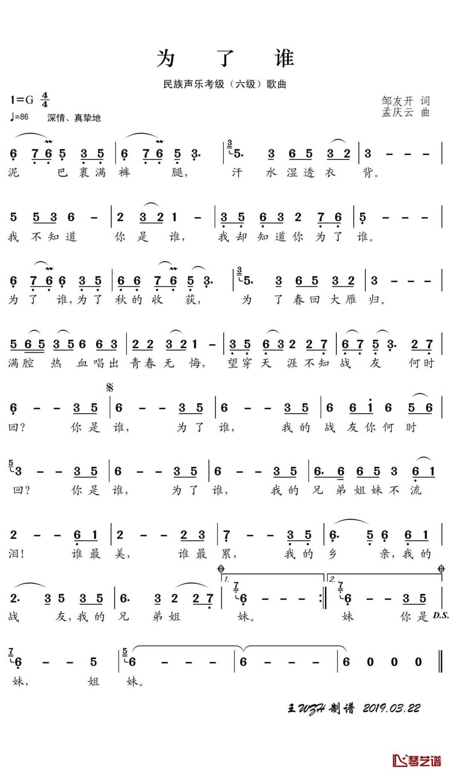 简谱G调来源:王wzh3969 浏览2020-05-01 10:20发布图谱共1页
