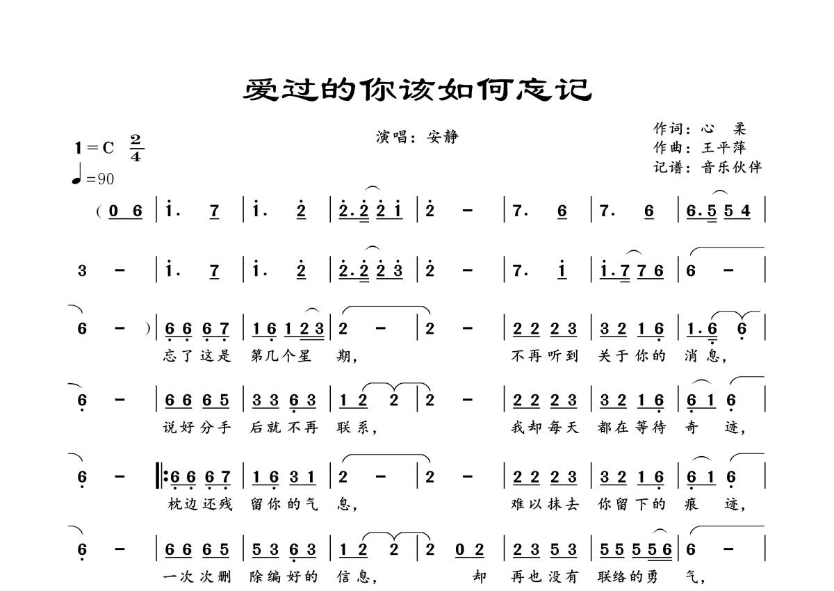 曲谱介绍: 安静《爱过的你该如何忘记》,音乐伙伴编配出品,共有1张高清图谱,免翻页排版设计。