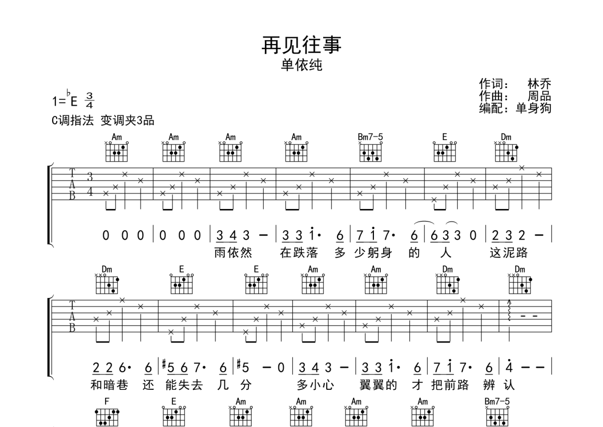 • 再见往事吉他谱 - 单依纯 - C调吉他弹唱谱第1张