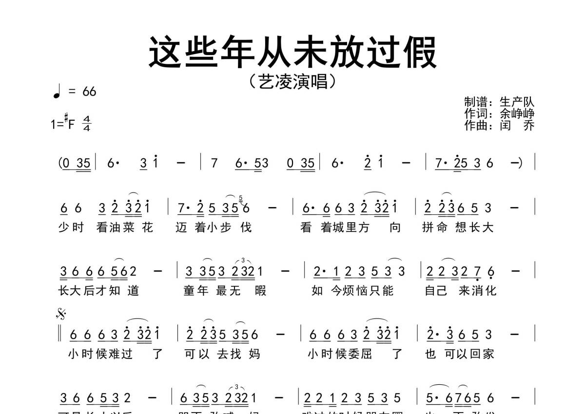 曲谱介绍: 艺凌《这些年从未放过假》,静沐暖阳编配出品,共有1张高清图谱,免翻页排版设计。