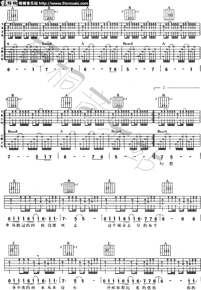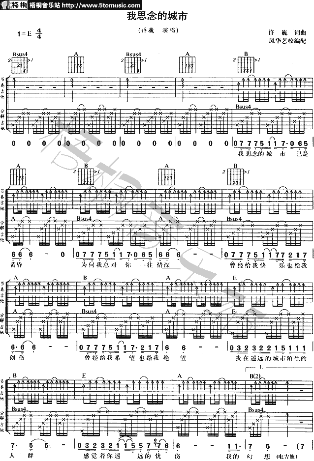 曲谱介绍: 许巍《我思念的城市》吉他弹唱谱,共有3张高清图谱。