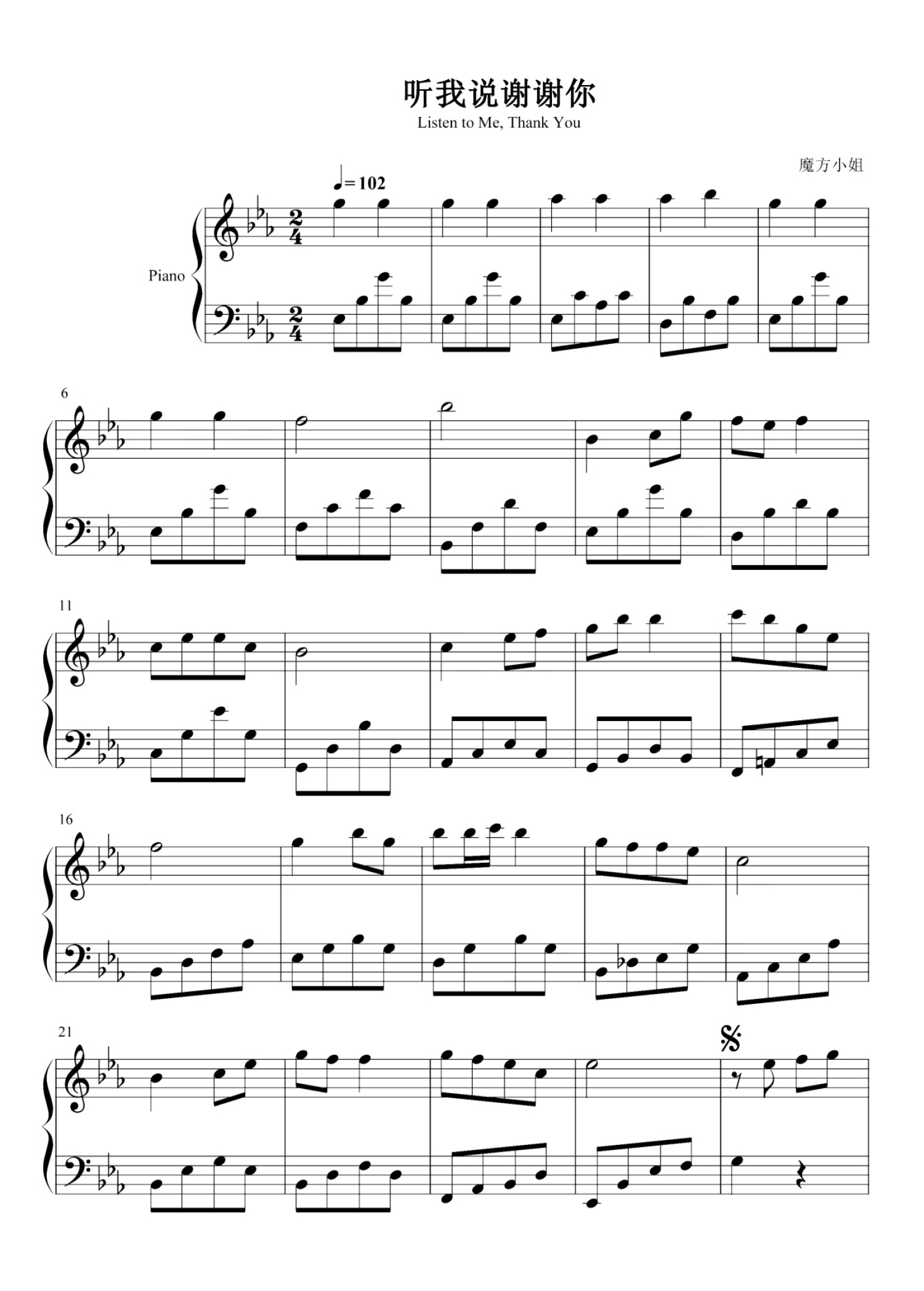 当前位置:琴谱网>钢琴谱>听我说谢谢你
