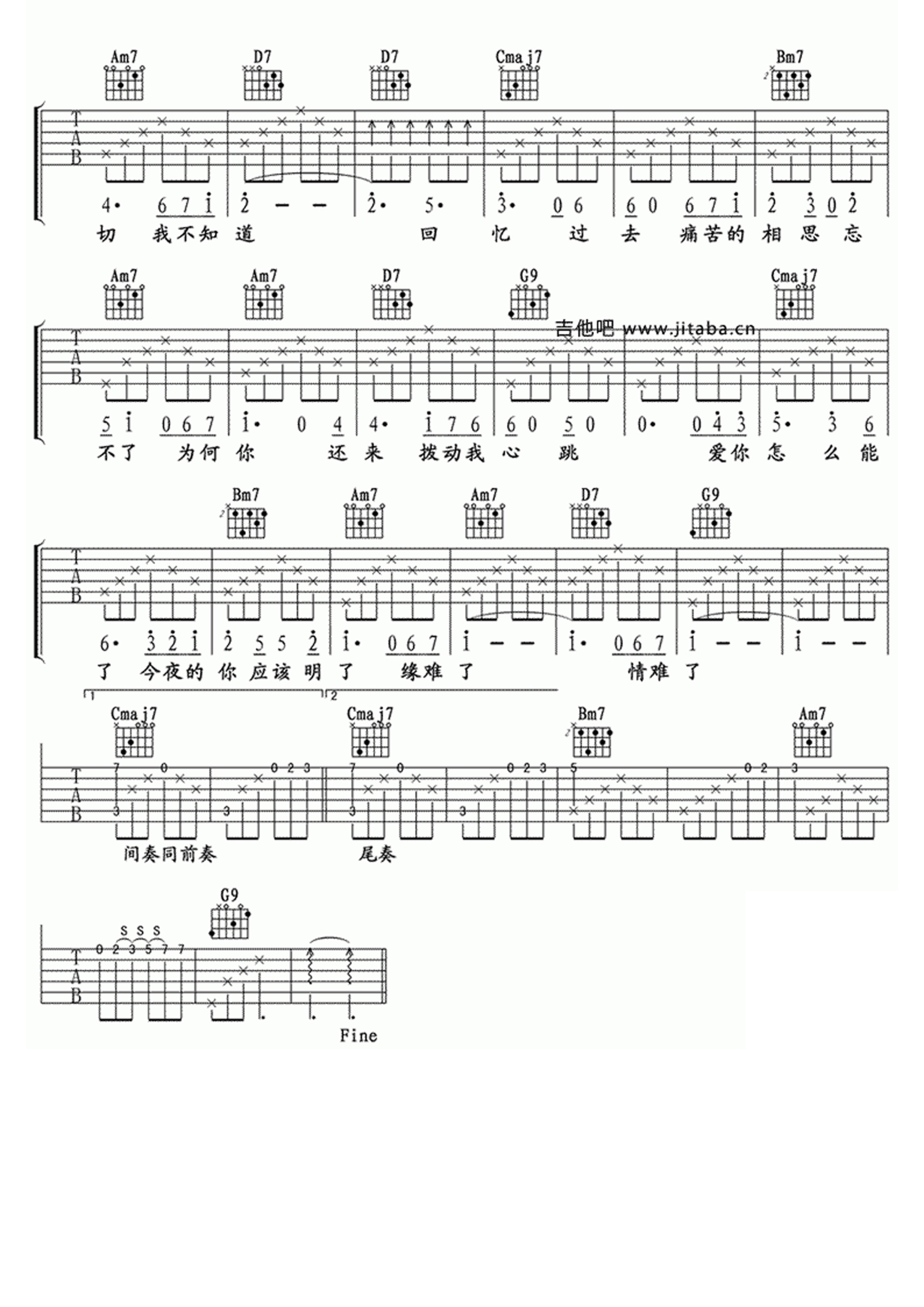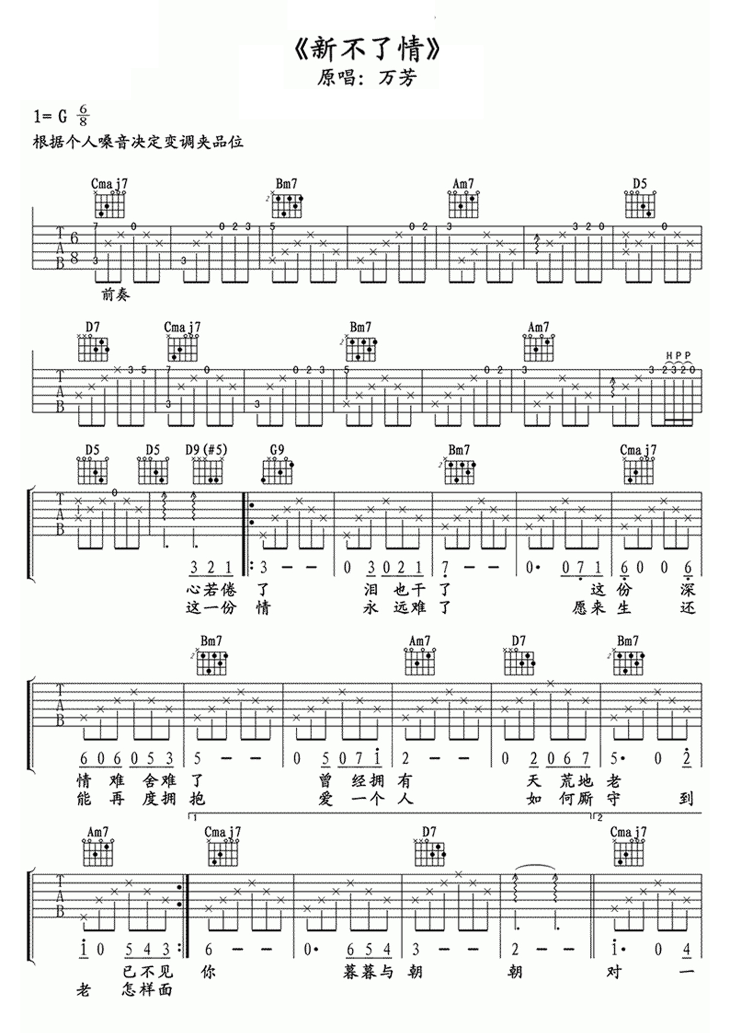 曲谱介绍: 万芳《新不了情》吉他谱_吉他弹唱谱