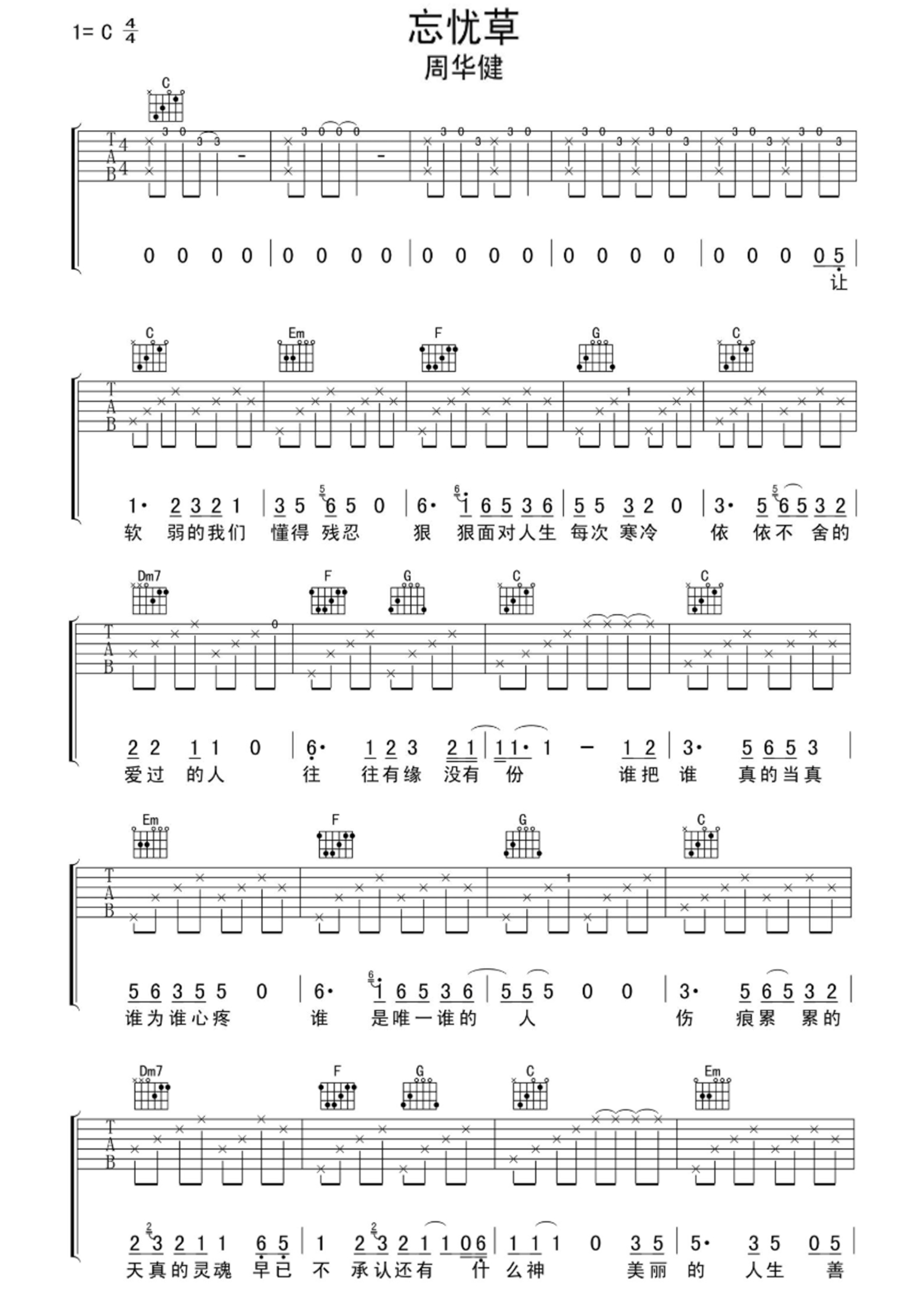 忘忧草吉他谱 - 周华健 - C调吉他弹唱谱