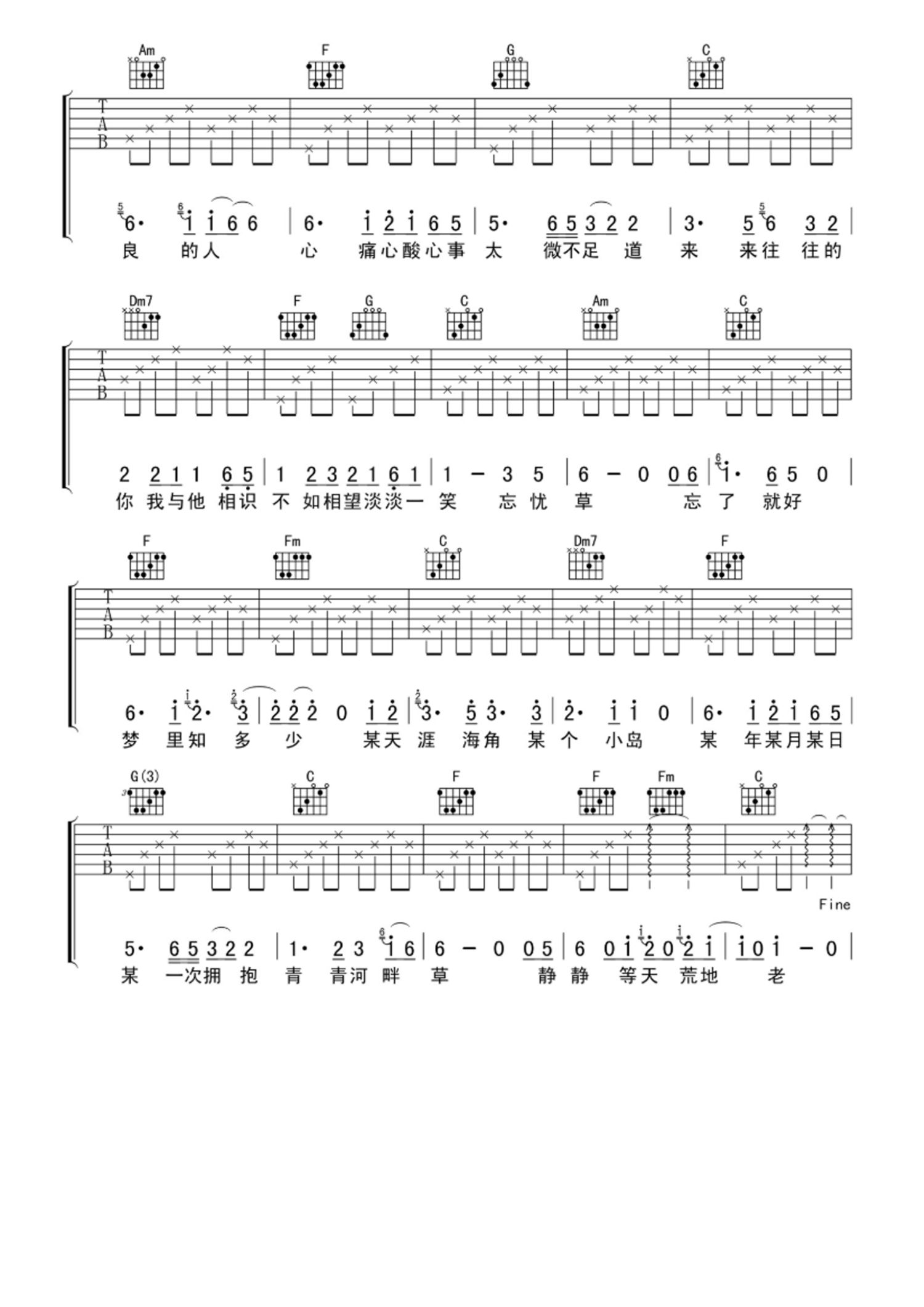 当前位置:琴谱网>吉他弹唱>忘忧草
