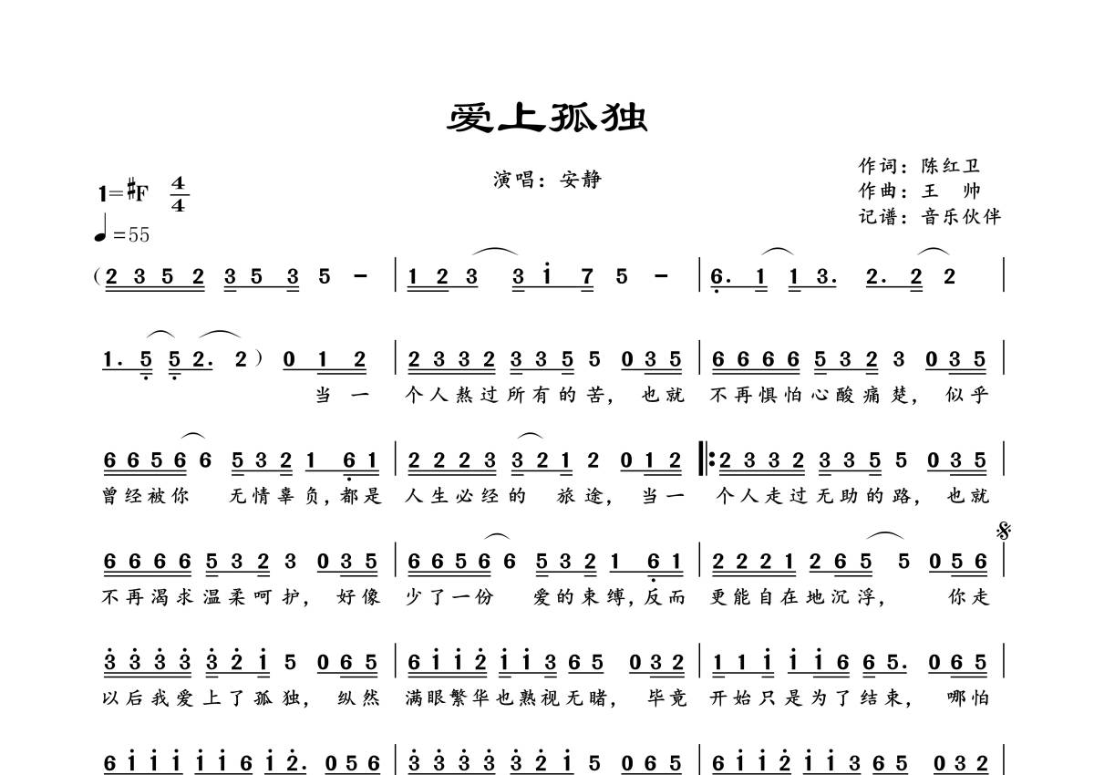 曲谱介绍: 安静《爱上孤独》,音乐伙伴编配出品,共有1张高清图谱,免翻页排版设计。