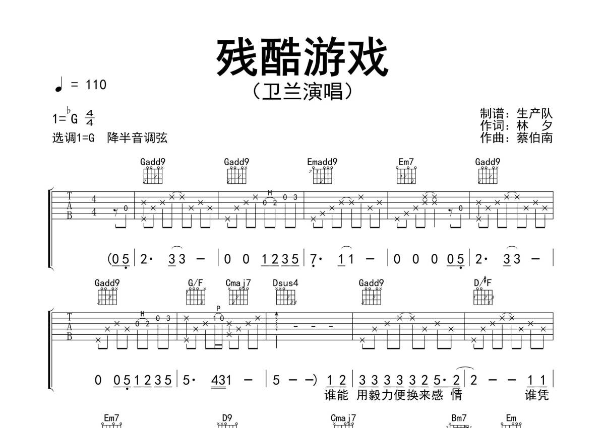 • 残酷游戏吉他谱 - 卫兰 - G调吉他弹唱谱 - 精编完美版第1张