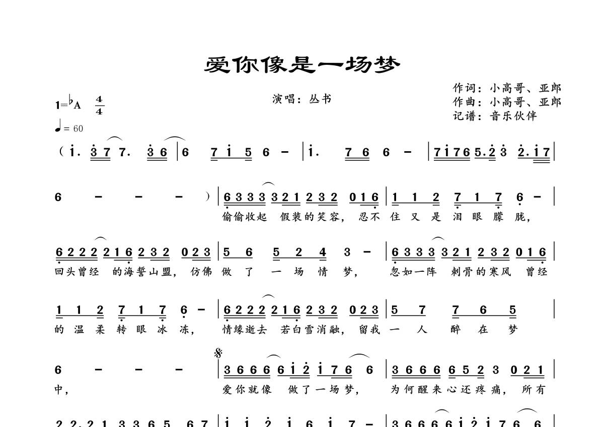 曲谱介绍: 丛书《爱你像是一场梦》,音乐伙伴编配出品,共有1张高清图谱,免翻页排版设计。