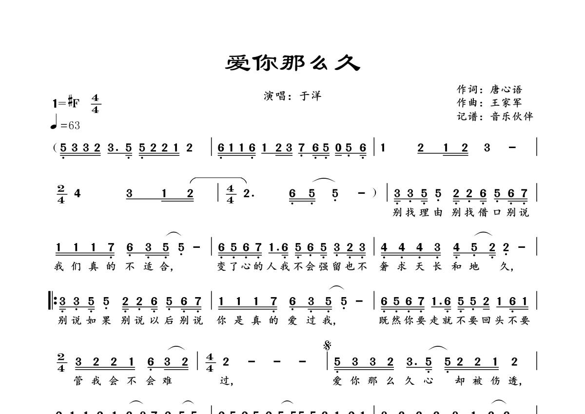 曲谱介绍: 于洋《爱你那么久》,音乐伙伴编配出品,共有1张高清图谱,免翻页排版设计。