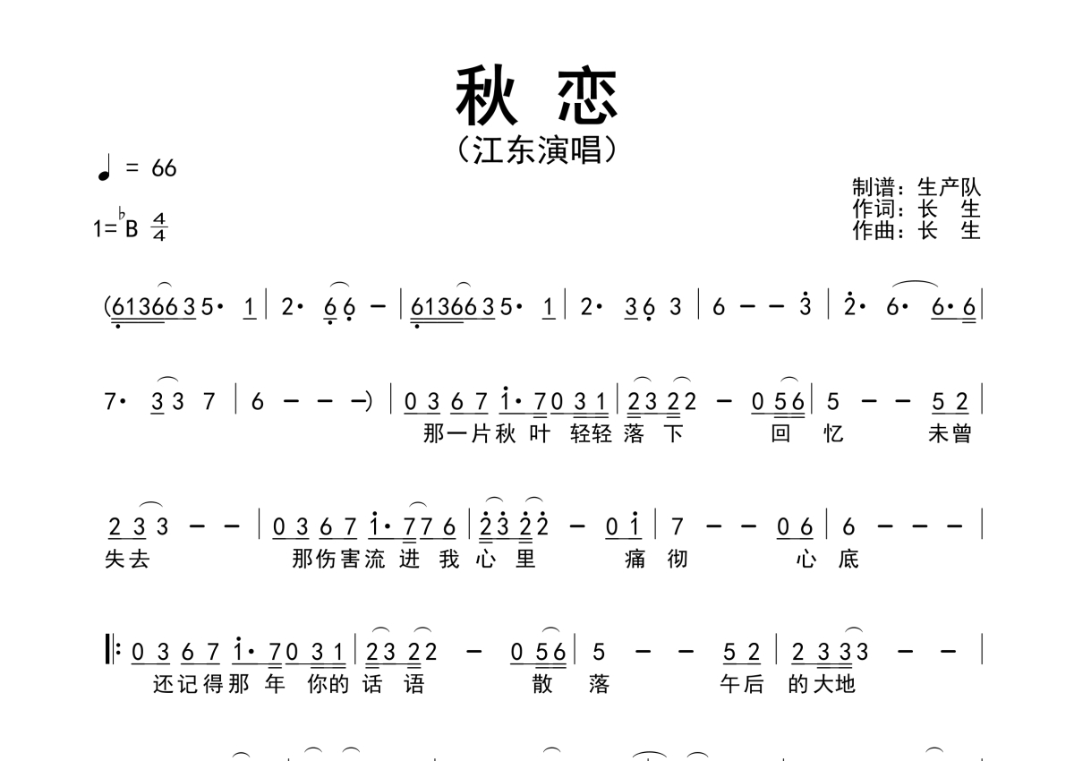 • 秋恋简谱 - 江东 - 原版简谱第1张