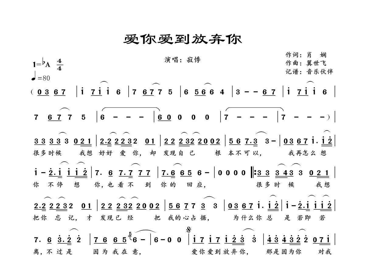 当前位置:琴谱网>简谱>爱你爱到放弃你