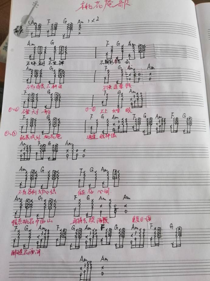 曲谱介绍: 岸小松《桃花庵歌》吉他弹唱谱,共有2张高清图谱,免翻页排版设计。