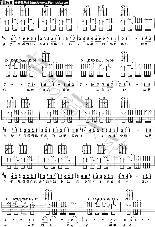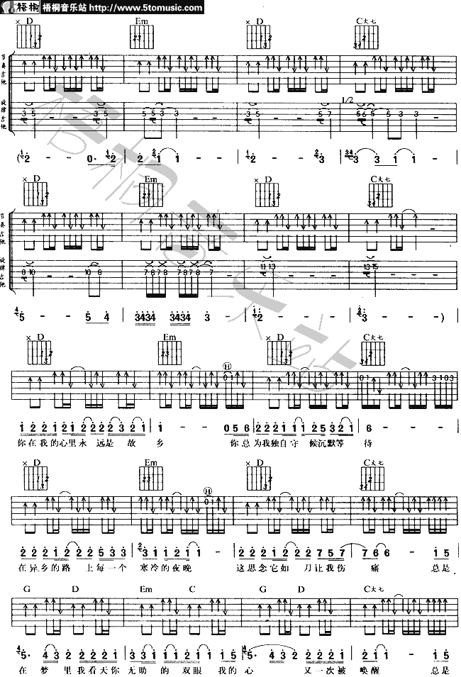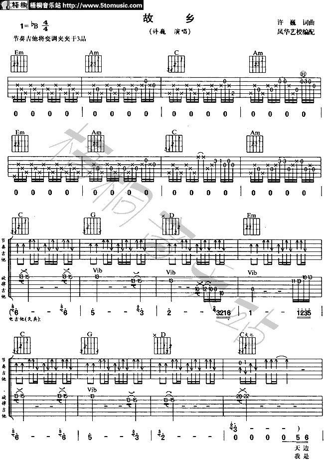 故乡吉他谱 - 许巍 - 吉他弹唱谱
