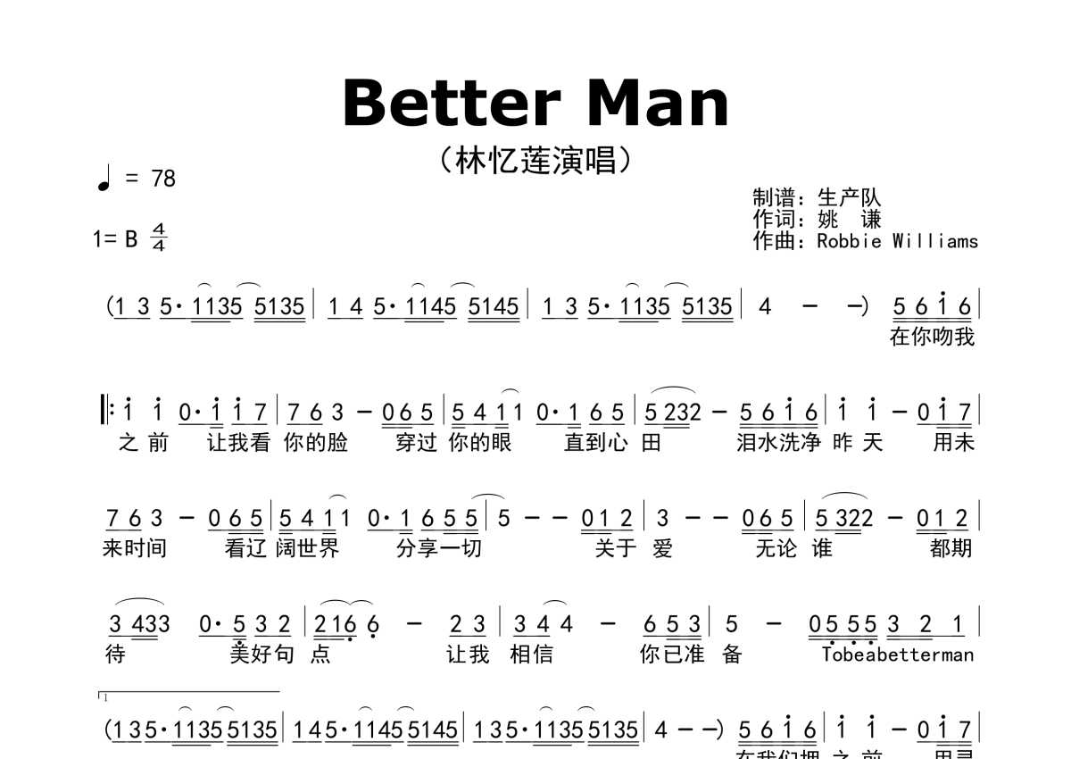 • Better Man简谱 - 林忆莲 - 原版简谱第1张