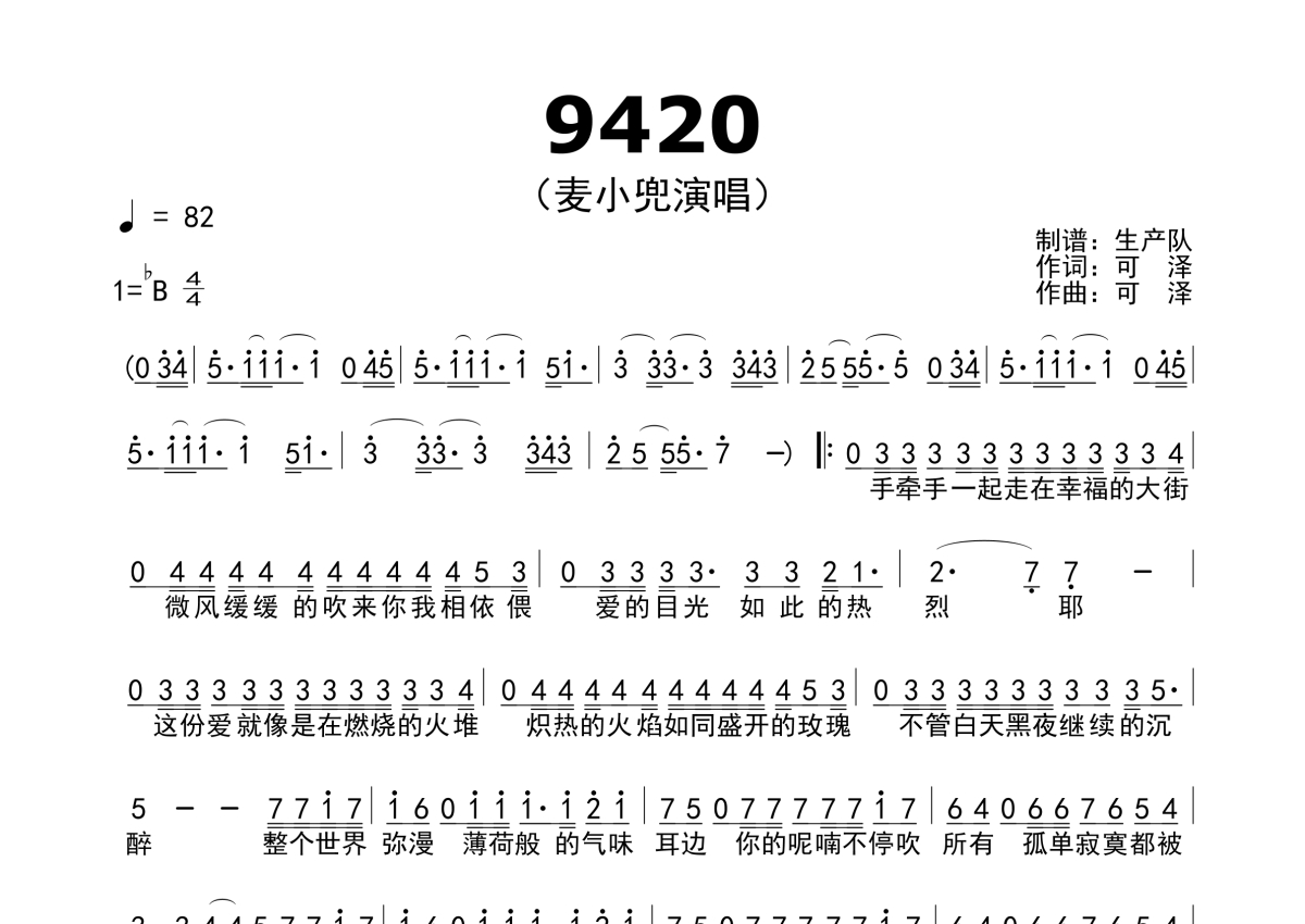 曲谱介绍: 麦小兜《9420》原版简谱,生产队编配出品,共有1张高清图谱,免翻页排版设计。