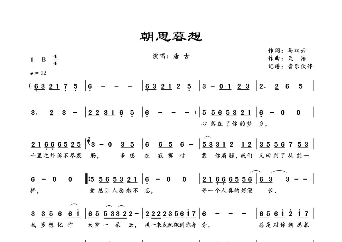 曲谱介绍: 唐古《朝思暮想》,音乐伙伴编配出品,共有1张高清图谱,免翻页排版设计。