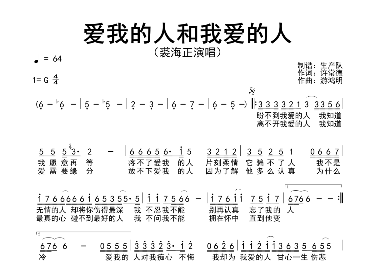 爱我的人和我爱的人简谱 - 裘海正 - 原版简谱