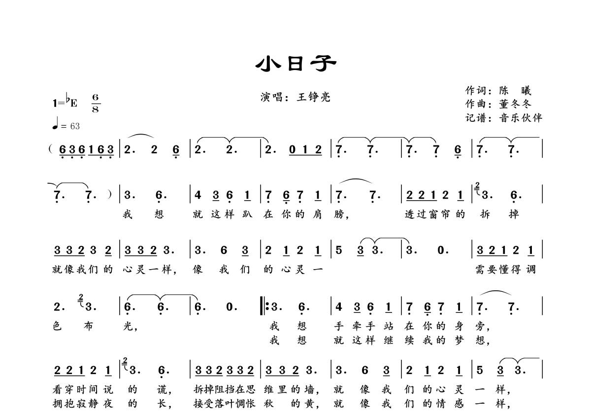 曲谱介绍: 王铮亮《小日子》,音乐伙伴编配出品,共有1张高清图谱,免翻页排版设计。