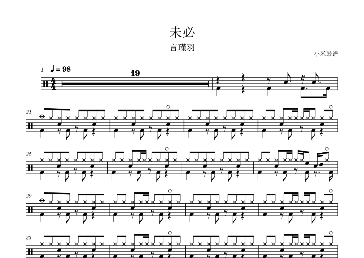 未必鼓谱 - 言瑾羽 - 架子鼓谱