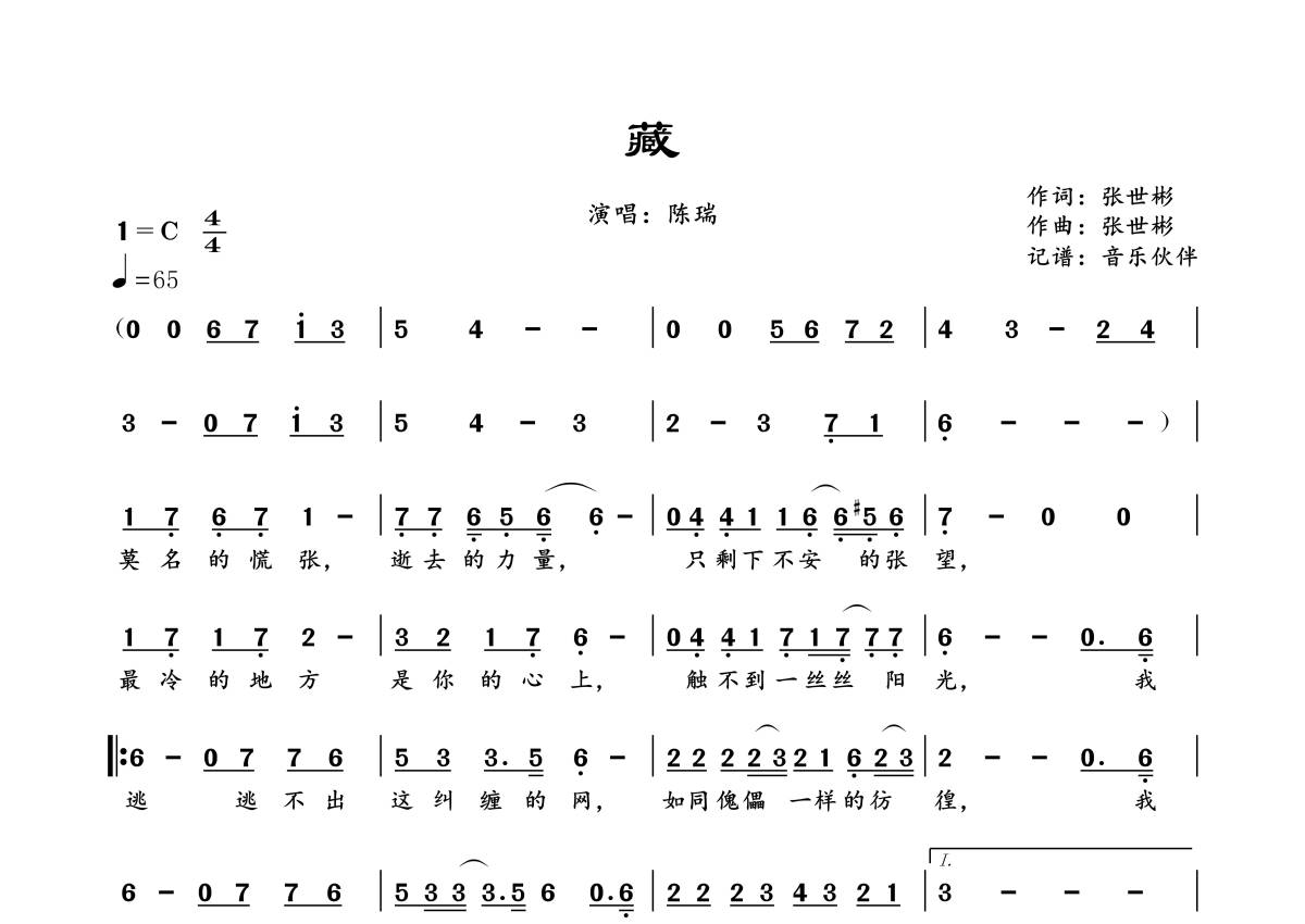 曲谱介绍: 陈瑞《藏》,音乐伙伴编配出品,共有1张高清图谱,免翻页排版设计。