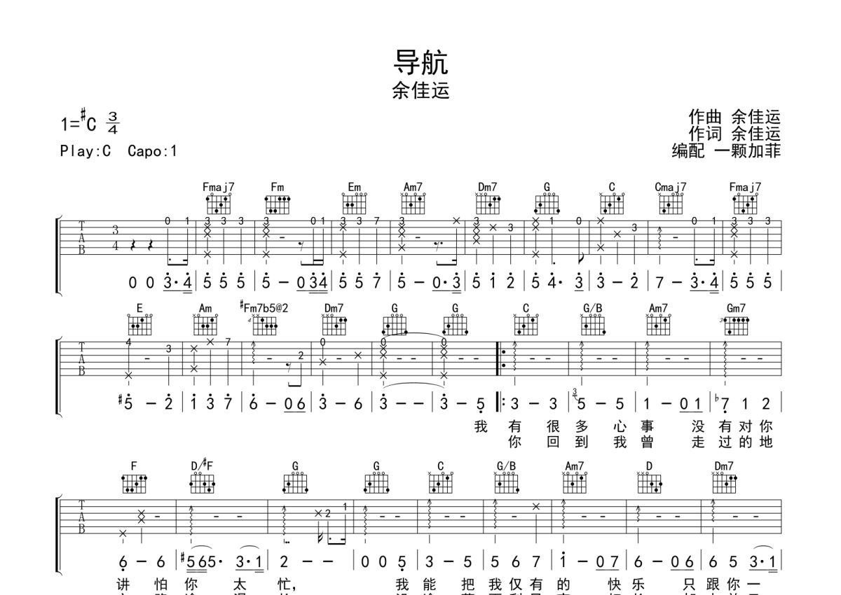 • 导航吉他谱 - 余佳运 - C调吉他弹唱谱第1张