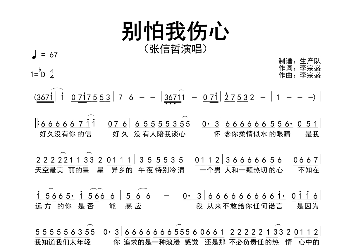 • 别怕我伤心简谱 - 张信哲 - 原版简谱第1张