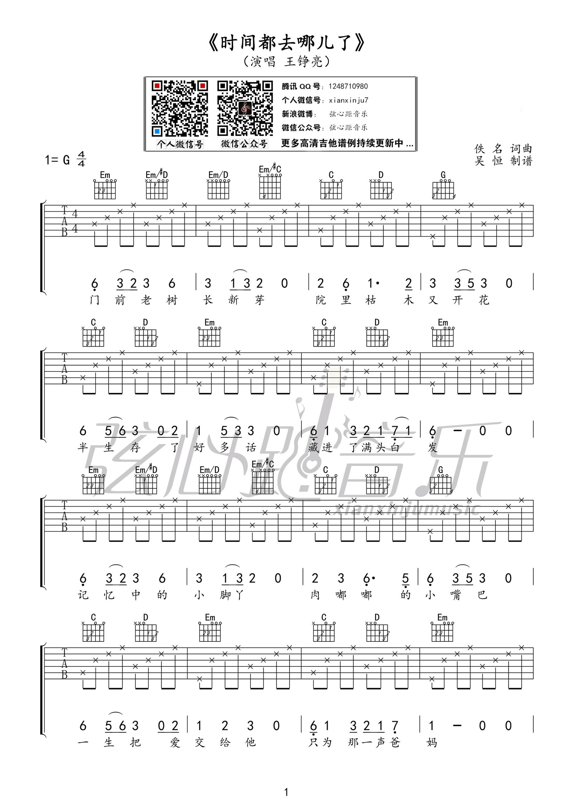 时间都去哪儿了吉他谱 - G调吉他弹唱谱