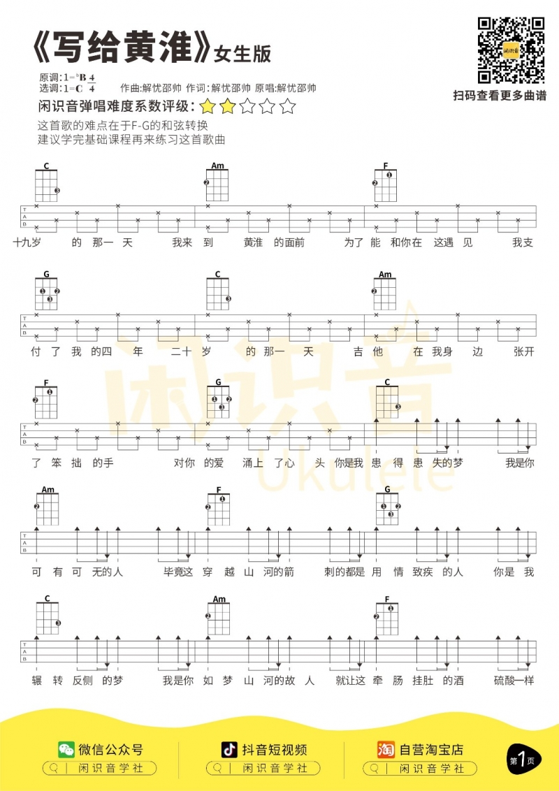 曲谱介绍: 《写给黄淮》,共有3张高清图谱。