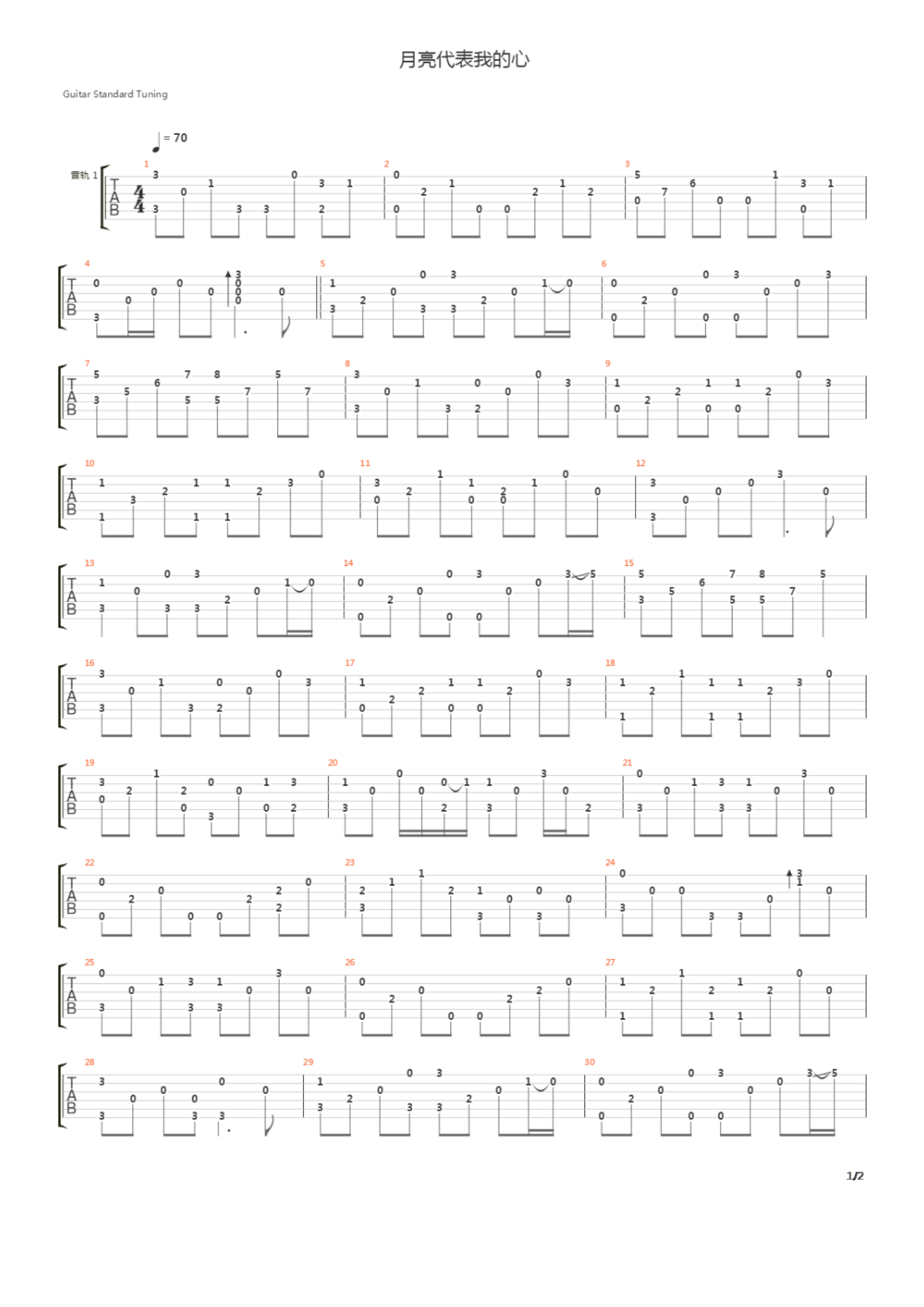 月亮代表我的心吉他谱 - 邓丽君 - 吉他独奏谱