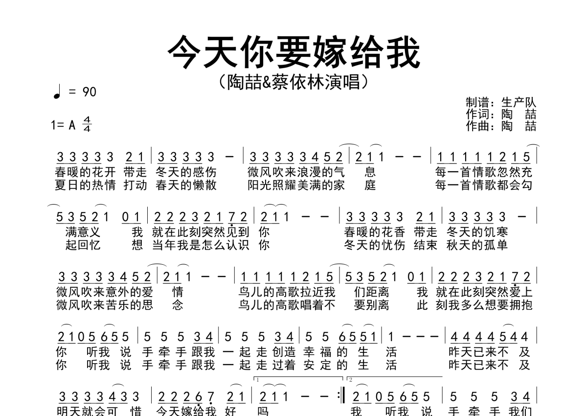 • 今天你要嫁给我简谱 - 陶喆/蔡依林 - 简谱第1张