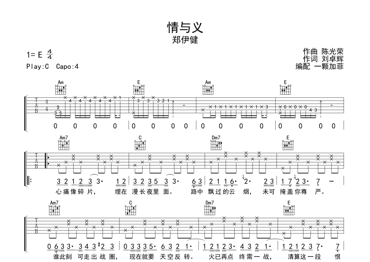 • 情与义吉他谱 - 郑伊健 - C调吉他弹唱谱第1张