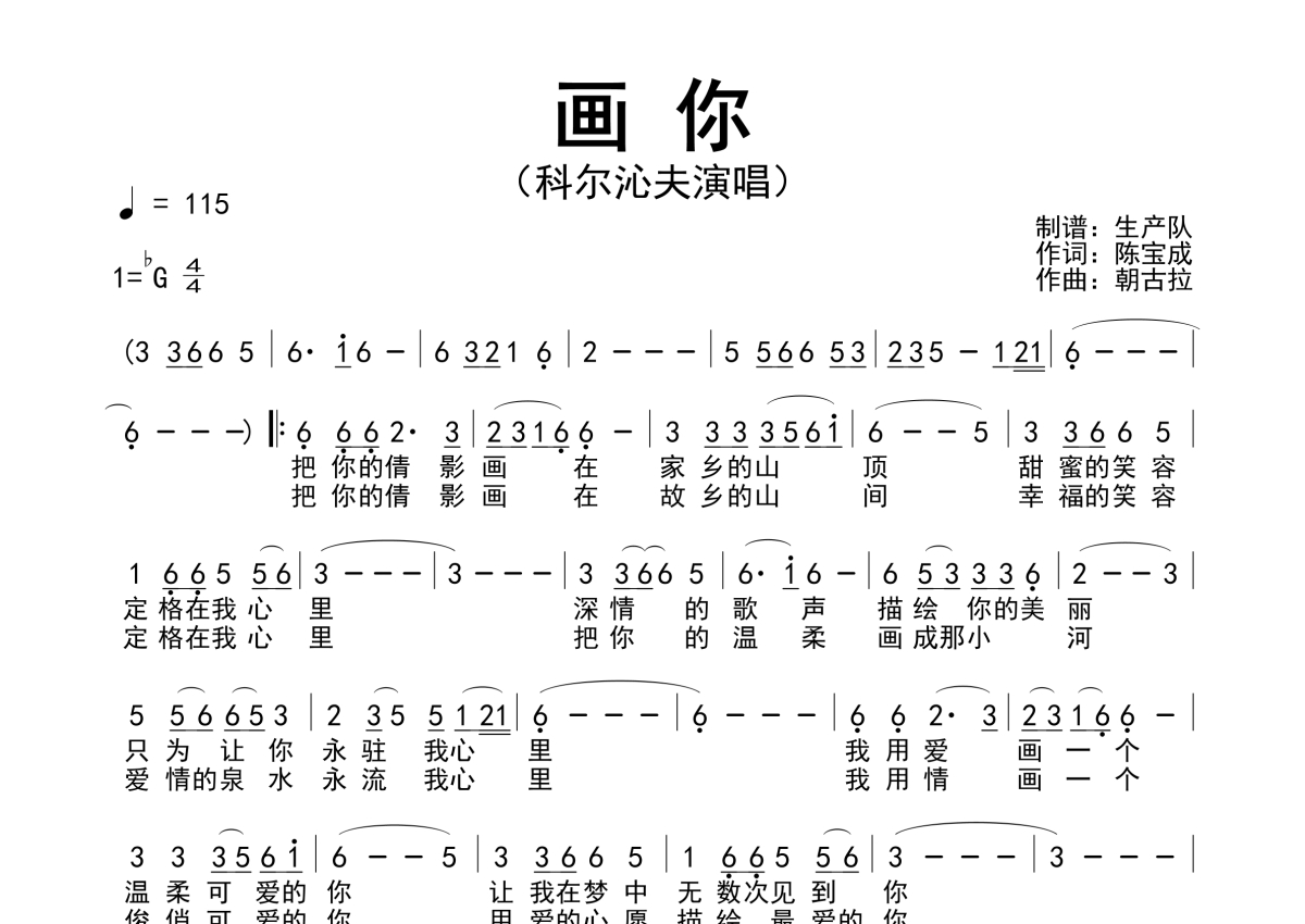 曲谱介绍: 科尔沁夫《画你》简谱,生产队编配出品,共有1张高清图谱,免翻页排版设计。