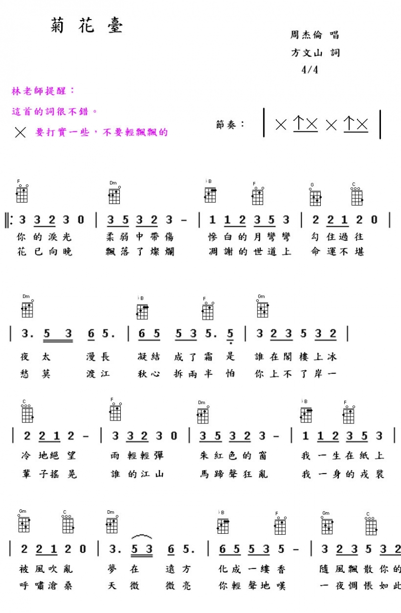 曲谱介绍: 《菊花台》,共有2张高清图谱,免翻页排版设计。