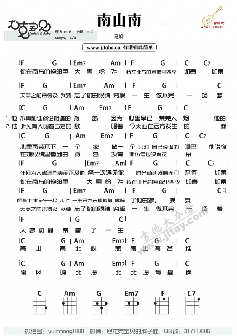 南山南尤克里里谱