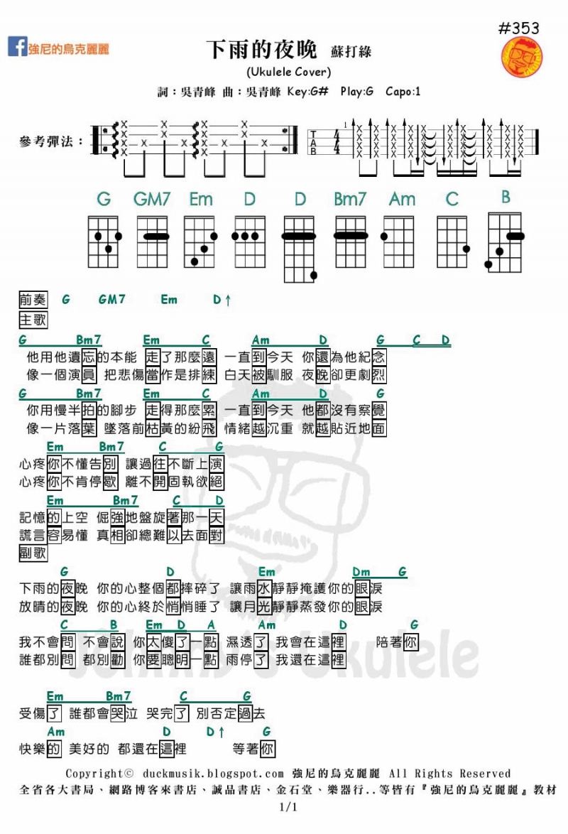 下雨的夜晚尤克里里谱