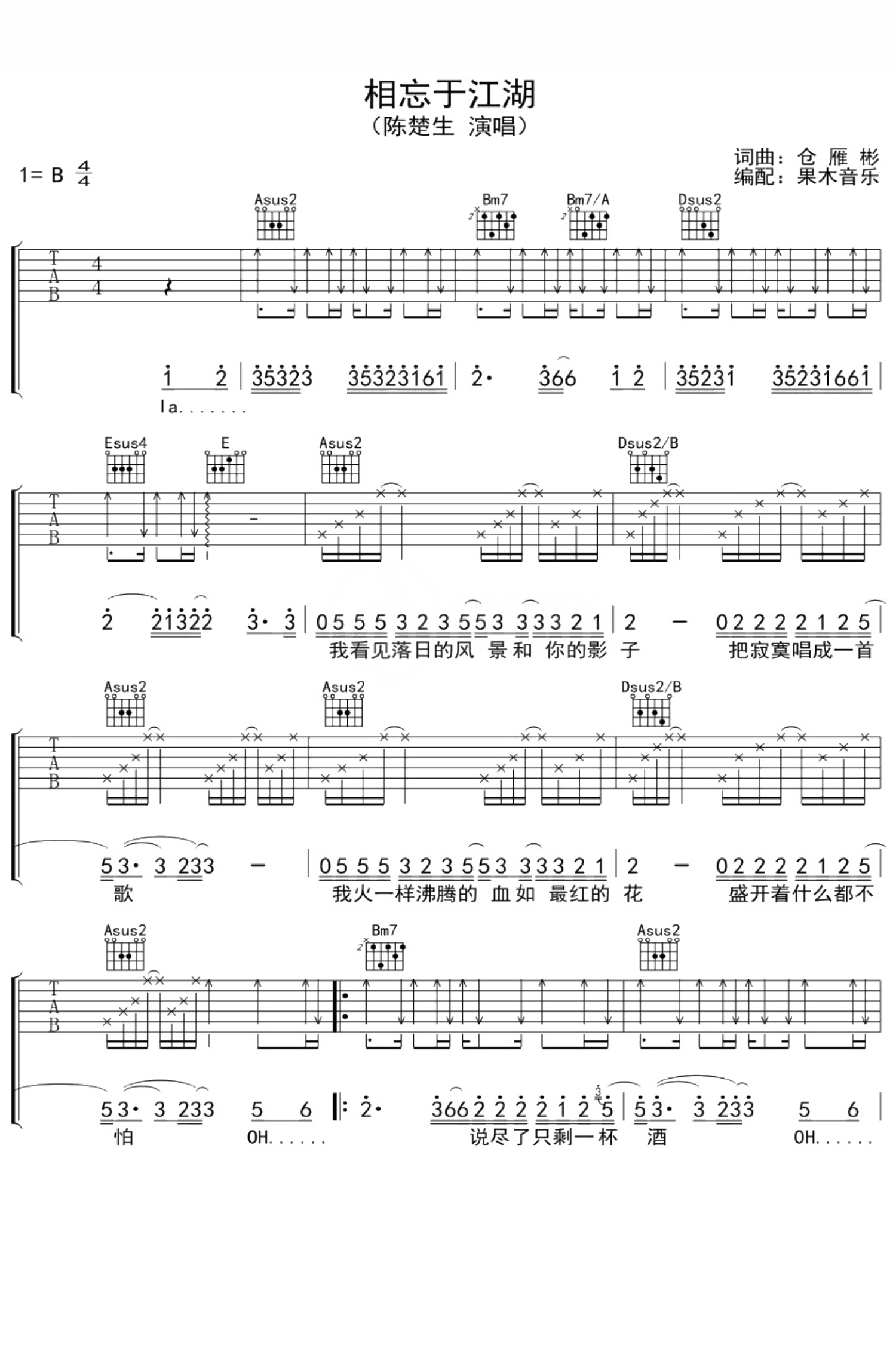 相忘于江湖吉他谱 - 陈楚生 - 吉他弹唱谱