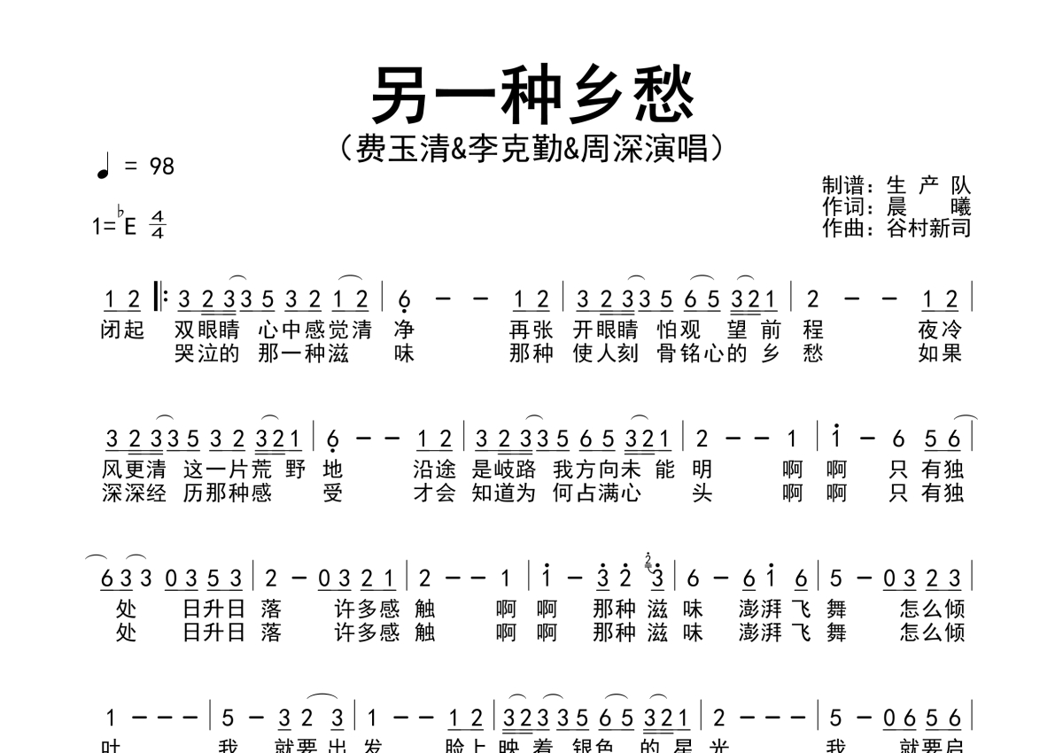 曲谱介绍: 费玉清/李克勤/周深《另一种乡愁》,生产队编配出品,共有1张高清图谱,免翻页排版设计。