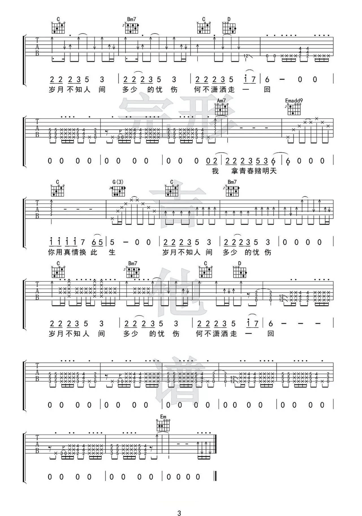 吉他弹唱G调来源:完形吉他-沈亮、刘鹏远6035 浏览2020-05-11 11:02发布图谱共3页