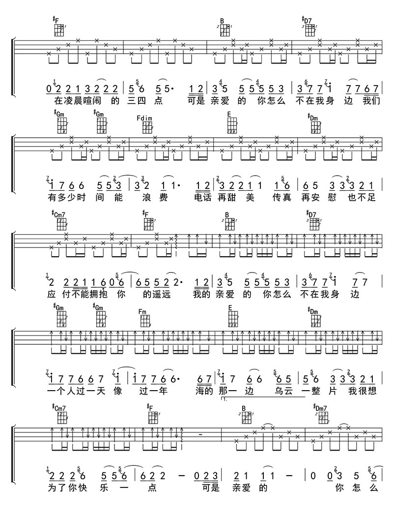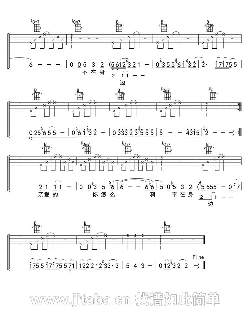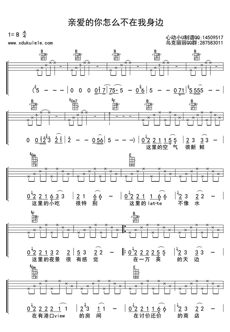 亲爱的你怎么不在我身边尤克里里谱