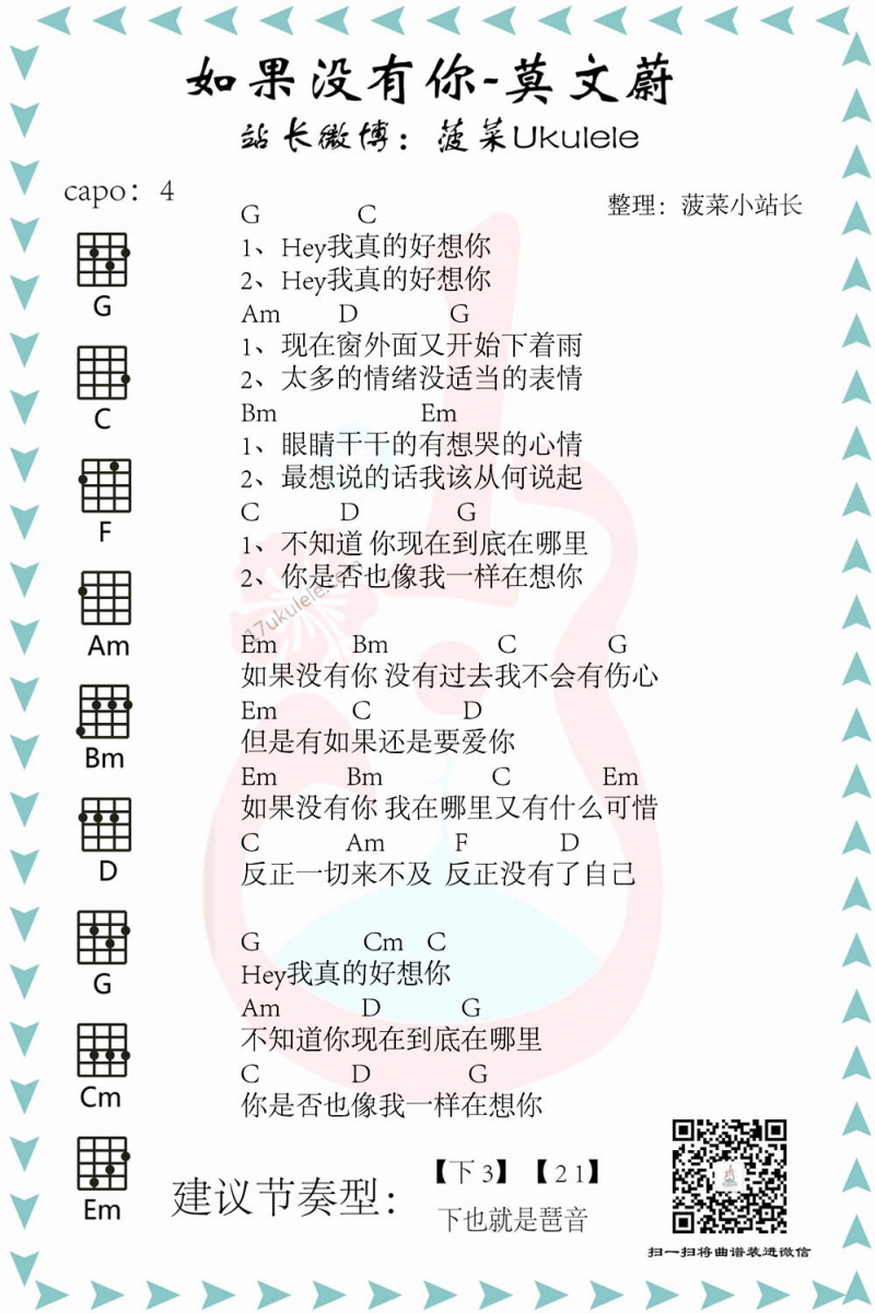 曲谱介绍: 《如果没有你》,共有1张高清图谱,免翻页排版设计。