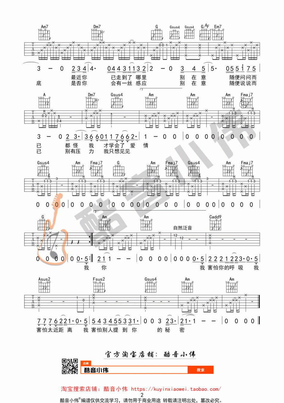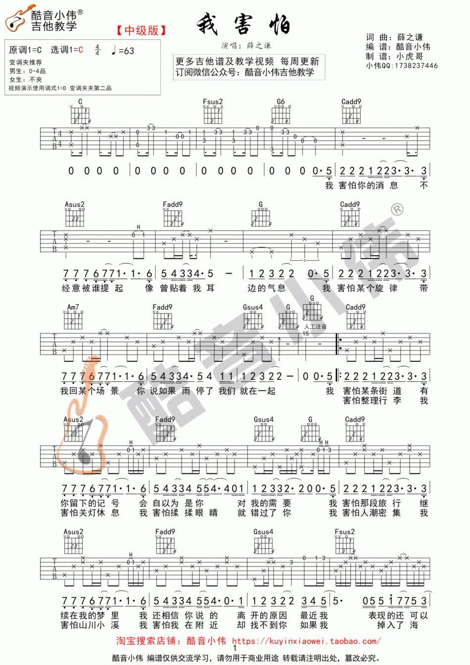曲谱介绍: 薛之谦《我害怕》吉他谱,C调简单版。我害怕吉他音乐,高清晰度的图片音乐。这是一个简单的音乐版本。钢琴演奏者可以参考网站为您准备的《教酷吉他》的视频实践。