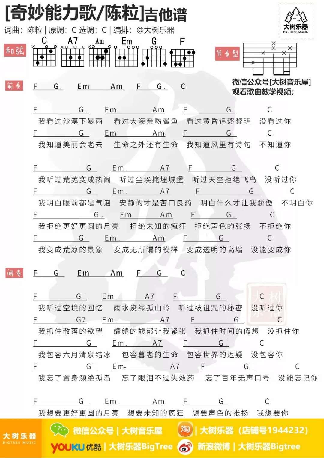 当前位置:琴谱网>吉他弹唱>奇妙能力歌
